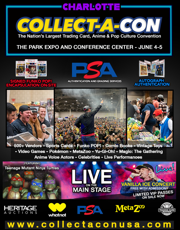 Charlotte, NC - Collect-A-Con is the Nation’s Largest Trading Card, Anime & Pop Culture Convention. This epic collectibles trade show event boasts over 500 dealers w/ the hottest collectibles! Collect-A-Con is showcasing celebrities, LIVE concerts, special guests, box breaks, sports cards, TCG cards (Pokémon, Magic, Yu-Gi-oh), comics, video games, Funko POP!s, vintage toys, and more! Don't miss this incredible ALL AGES weekend event.