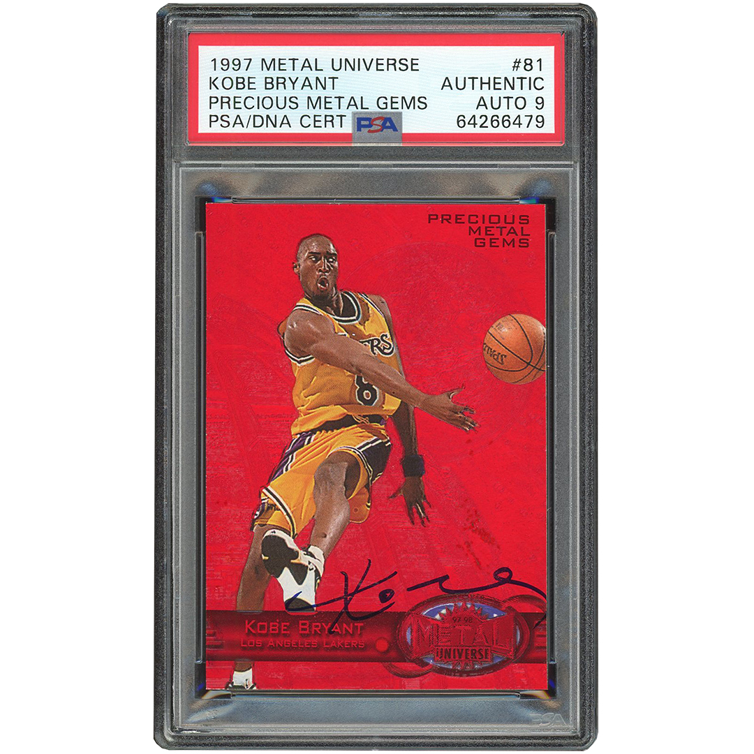 - Freshly Graded 1997 Skybox Metal Universe Precious Metal Gems #81 Kobe Bryant (60/100) - PSA AA, MINT 9 AUTO - THE ONLY KNOWN AUTOGRAPHED KOBE PMG IN THE HOBBY! — $500,000-$1,000,000