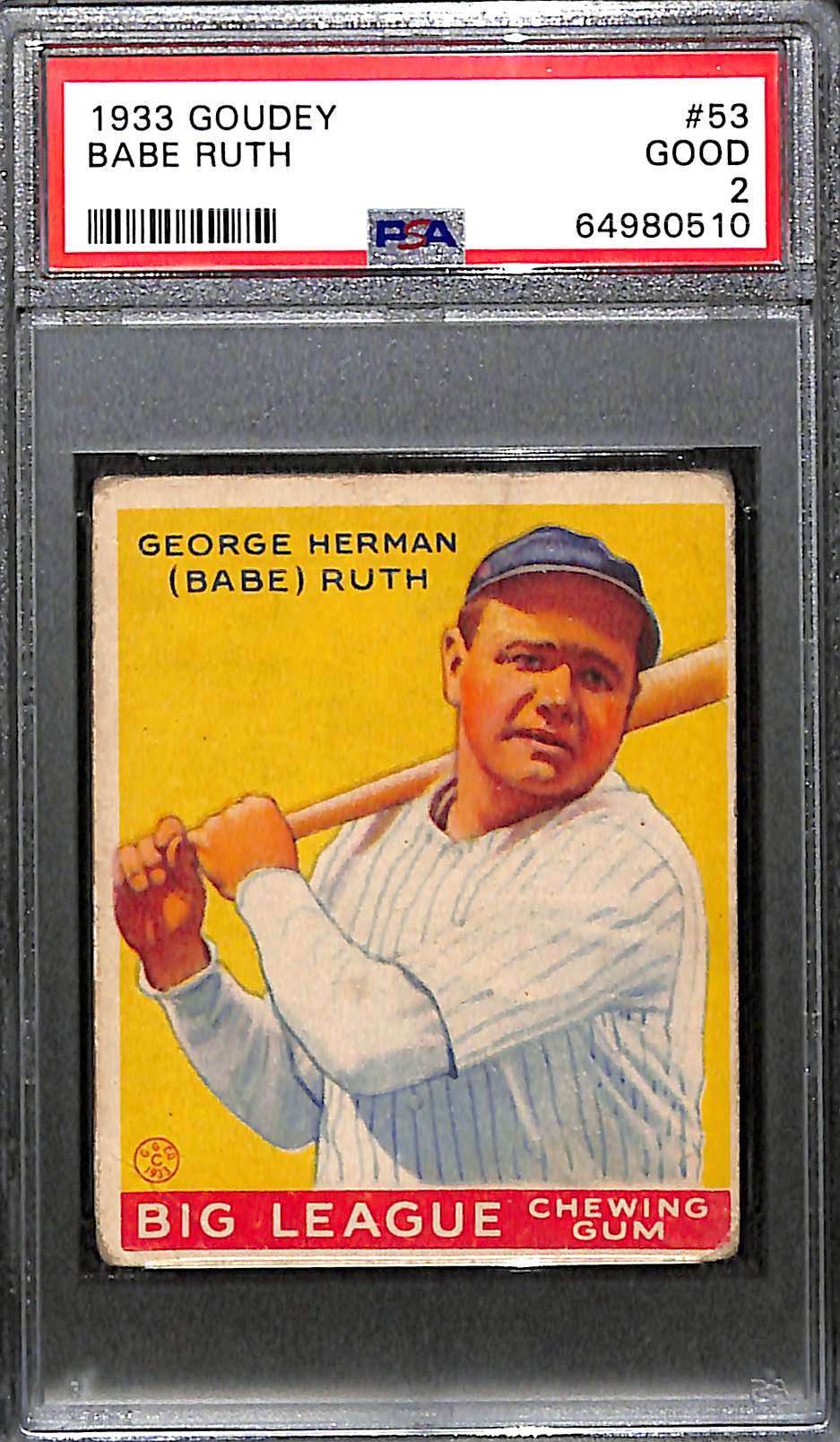 - Key vintage cards include 1911 T205 Ty Cobb, 1933 Goudey Babe Ruth, 1933 Goudey Lou Gehrig, 1934 Goudey Lou Gehrig, 1952 Topps Jackie Robinson, and many other superstar cards (Mantle, Williams more).